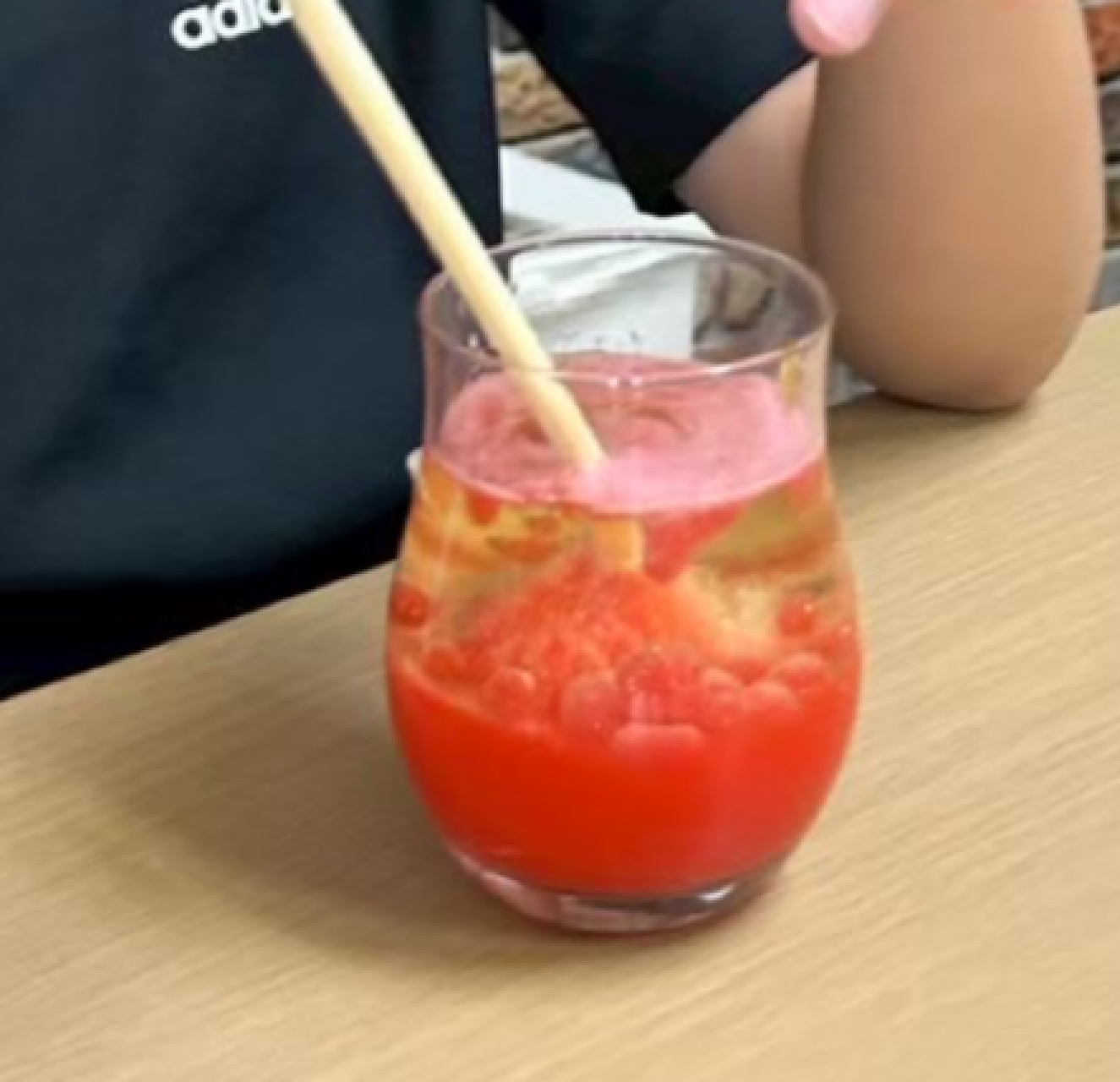 色水で、油と水(お湯)に分離したら、